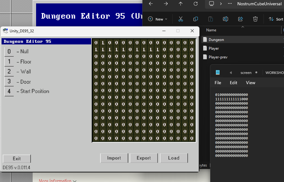Dungeon Editor 95 (UnityPort) is an remake of an in-house Level Editor for a game under the name of "Katabasis". There is not much information online about this game or its developer/s, leading me to believe that the project was shelved or released under a different name.